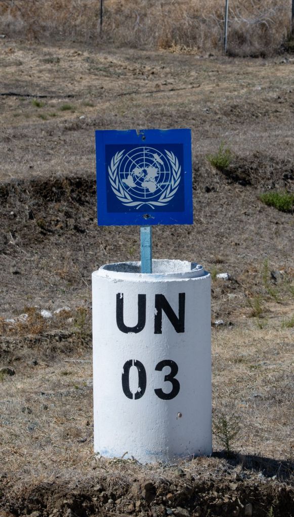 The last day. All that remained was to travel from Famagusta in the north to Larnaca Airport in the south. As normal participants travelled back at different times, and with the exception of the UK participant were travelling via some expected places including Belgrade and Gdansk. Luckily for us border geeks the route to the Airport included a border checkpoint – this time between the TRNC and the UK (SBA(E)) a long access road with OP’s and the borders with the RoC and TRNC a mere 50m from the roads edge. We were also able to see Duzce, an abandoned village which we saw on the route in. Finally we bagged our second tripoint of the trip CYUKUNw, marked by a white UN barrel.