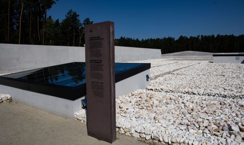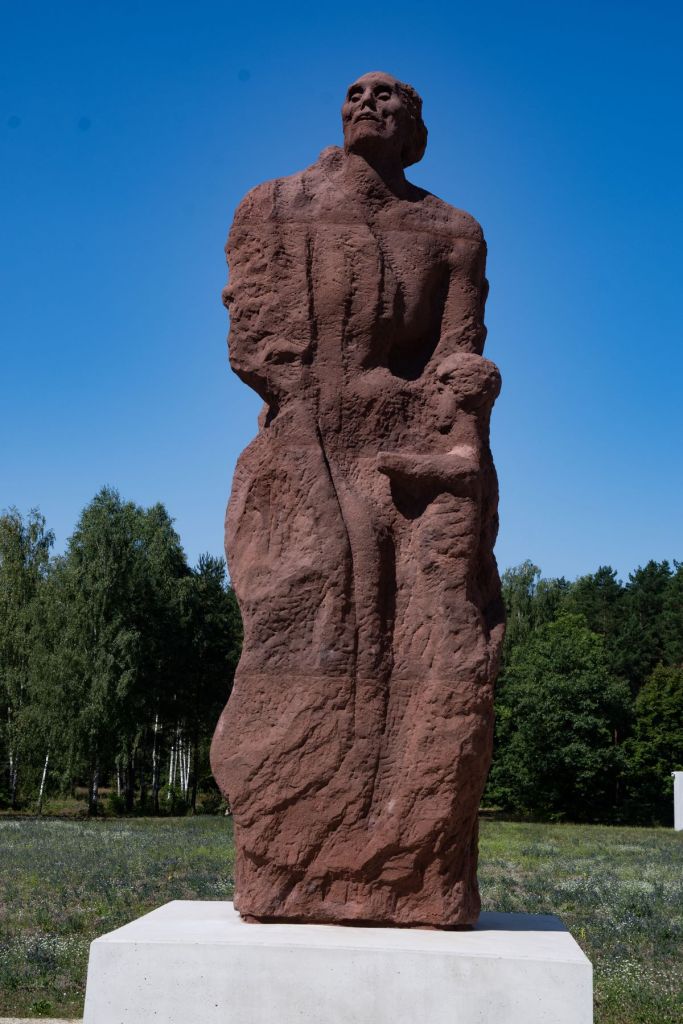 The Museum complex comprises the museum building located near the former railway station, which are connected by a paved Trail of Memory; a cast-iron statue of a woman with child on the “Road to Heaven” (Himmelfahrtstrasse) sculpted by Mieczysław Welter, as well as a large circular enclosure with a mound of ashes and crushed bones of the victims, collected at the site and formed into a broad pyramid next to the original open-air cremation pits.