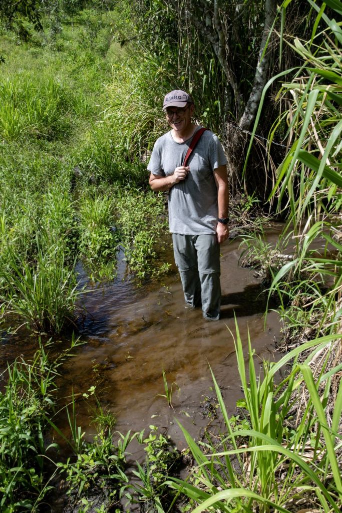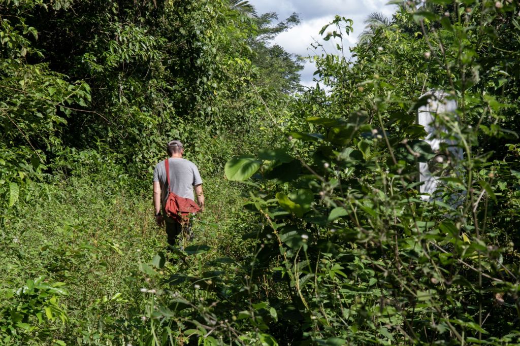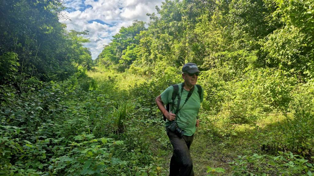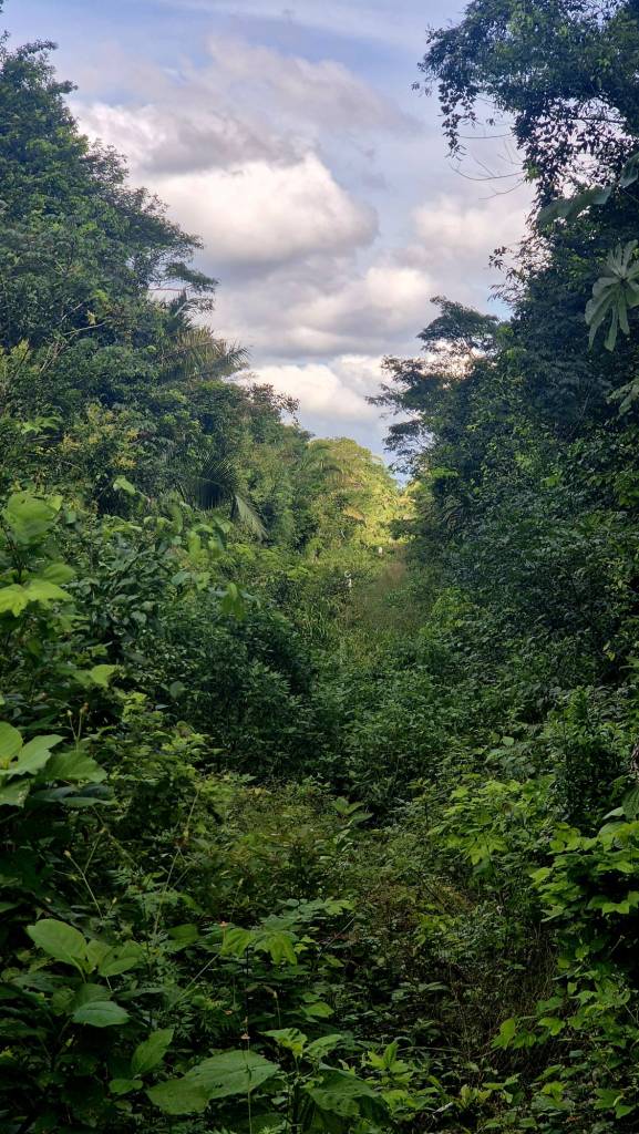 Throughout the whole hike to the tripoint we were unsure we would make it. Google maps indicated a track up to the jungle where it disappeared. We hoped there would be access routes used by Mexican border guards but could not be sure. The first part of the hike was straightforward, and we actually got a lift on the back of a couple of motorbikes part of the way which was great. It was hot and humid, with a temperature of 33C. After 7 km the trail ended and we entered the jungle, immediately it was damp and enclosed. The trail became narrower and in parts flooded but we headed south towards the frontier. One moment of concern (amongst many) was when the trail which appeared to be used by Quad bikes ended, and there seemed to be no way forward.