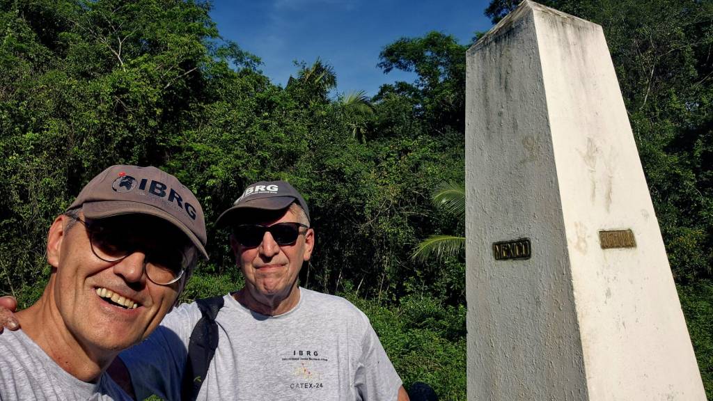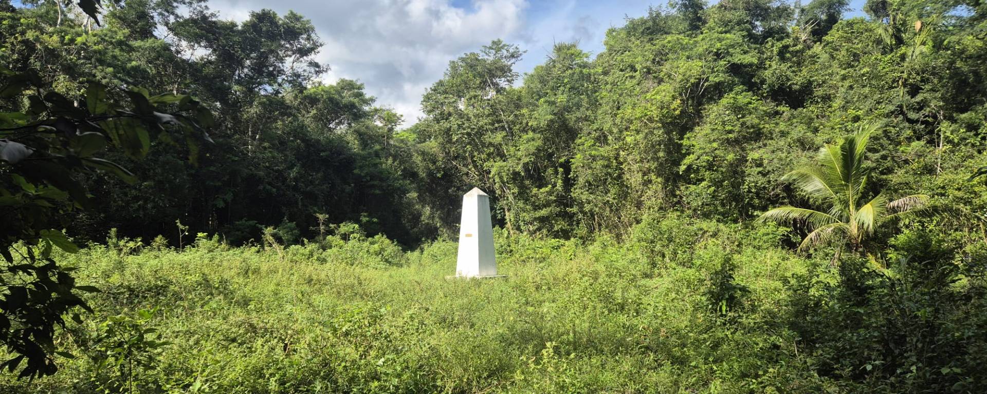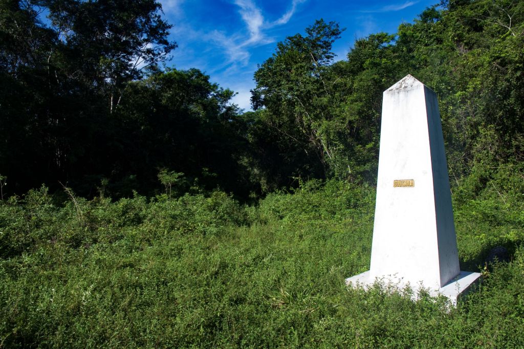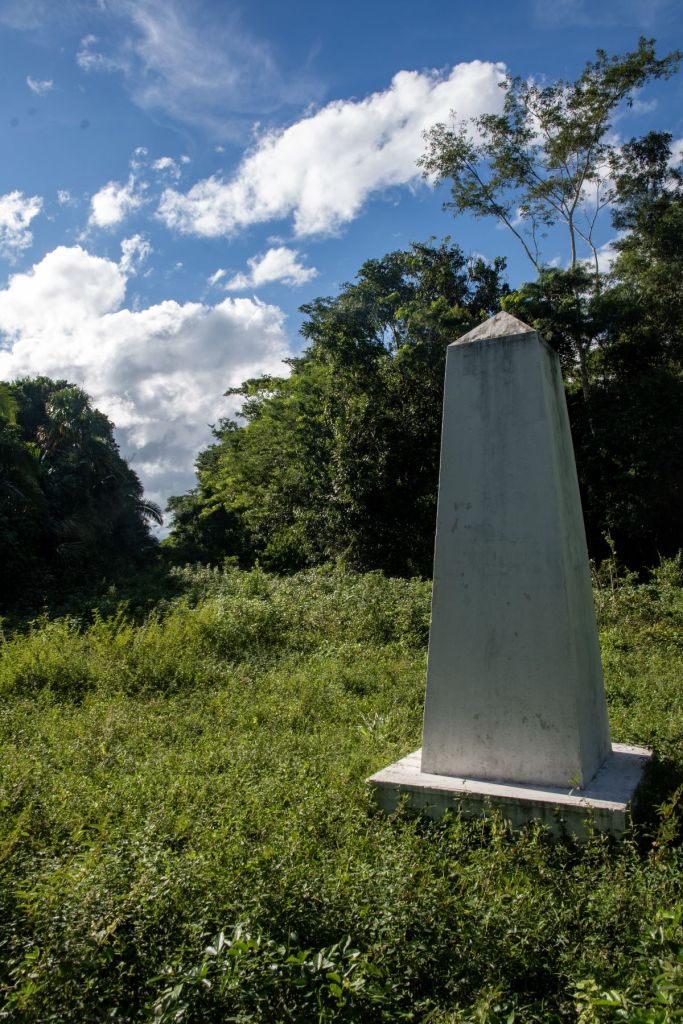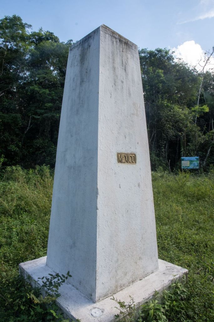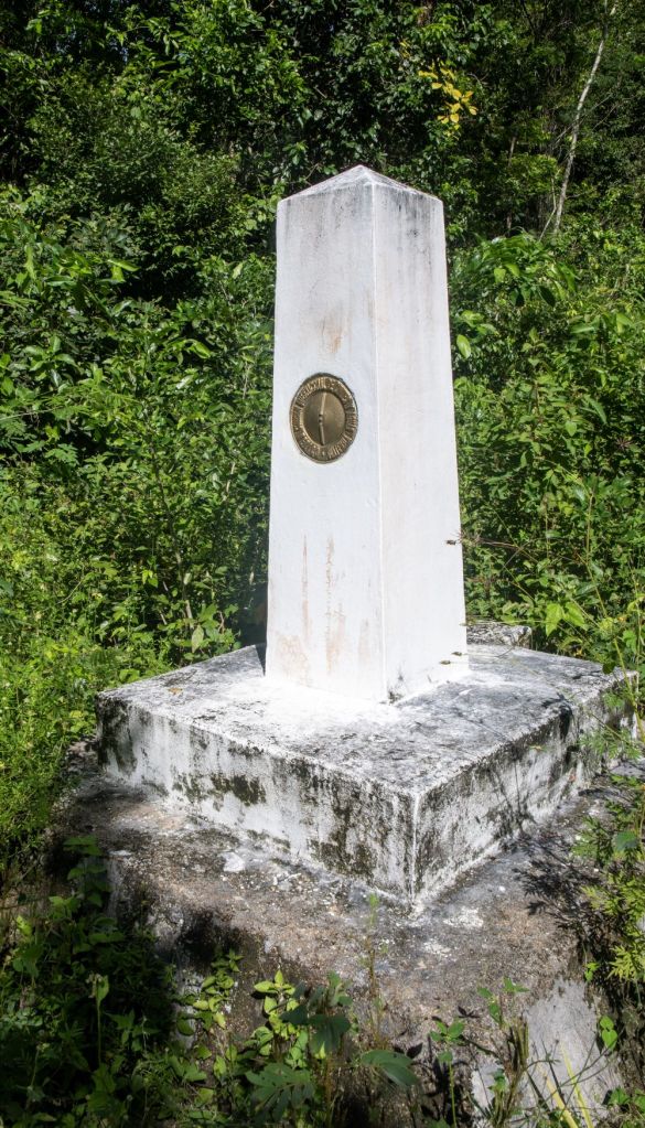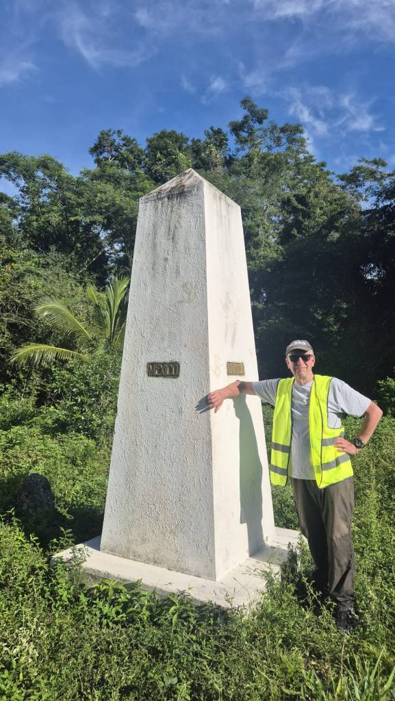 Finally, we pushed through that last of the vegetation and reached a large open area, vegetation was lower here and it was easier to note the respective borders: GT/MX, BZ/MZ and the one between BZ /GT. The monument was tall, at least 2.5 m and so it was a Class B visit as we were unable to reach the very top. The border marker was #107 on the GT/MX border. It also had a MX geodesic mark which we had not known about prior to the visit. Only 2 country signs are on the monument with the Belize one missing. One had been fixed on (there were clear marks indicating its location) but had been removed, probably by Guatemala.
