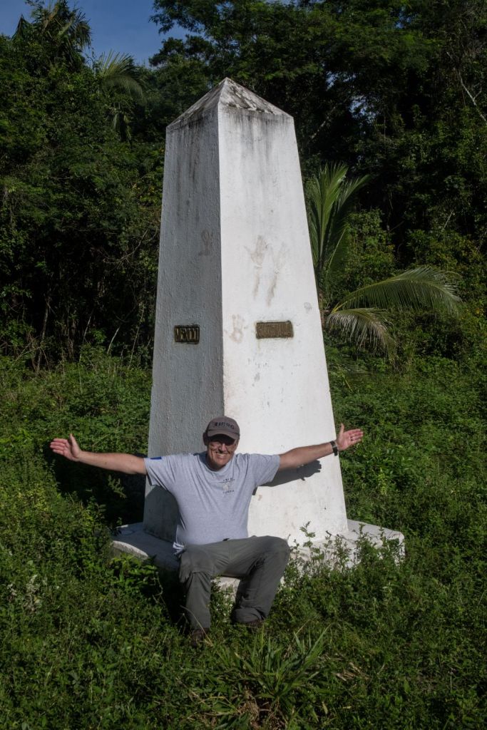 Coming out of the relative gloom of the jungle it seems very bright on the border line. Although some of the GT/MX border strips we have seen on this trip had been well maintained this was not the case here. The strip was overgrown and in parts flooded. It was necessary to reestablish a path by pushing through the vegetation. A machete would have been useful here! It was at this moment however that we realised that we were after all going to bag this tripoint.