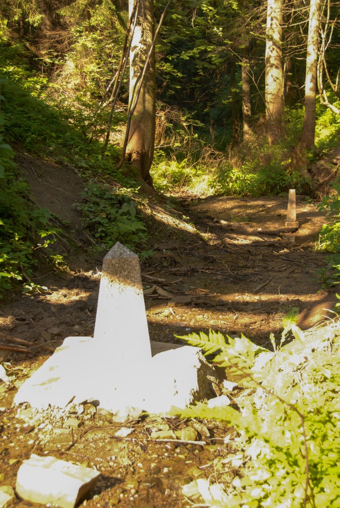 | 41 | HUROUA | Hungary – Romania – Ukraine | 47°57’14″N 22°53’45″E | Wet | The tripoint is located in the river Tur. There are 3 large tripoint monuments, one in each country and border markers in HU and UA. A small (blocked) track links the HU and UA monuments. The RO monument is across the river. |