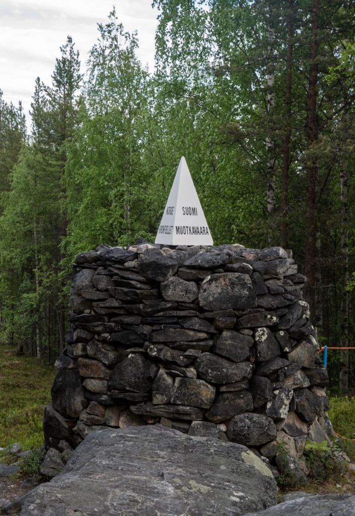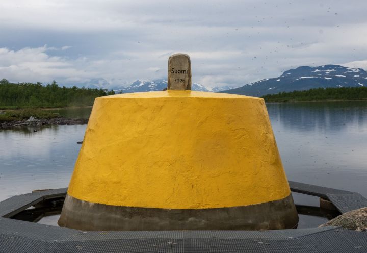 | 37 | FINOSE | Finland – Norway – Sweden | 69°03′35″N 20°32′49″E | Dry | The Three-Country Cairn marks the tripoint. The current tripoint monument was built in 1926 and was originally beige, conical frustum made of concrete, located about 10 metres out in Lake Goldajärvi. The monument is large and there are engraved headstones with symbols of each country. Technically walking around the monument on the platform means leaving Sweden, entering a small pene enclave of Norway and then entering Finland if you walk in a clockwise direction. The are several border markers in the vicinity. Krogh Van der Giessen (2024) |