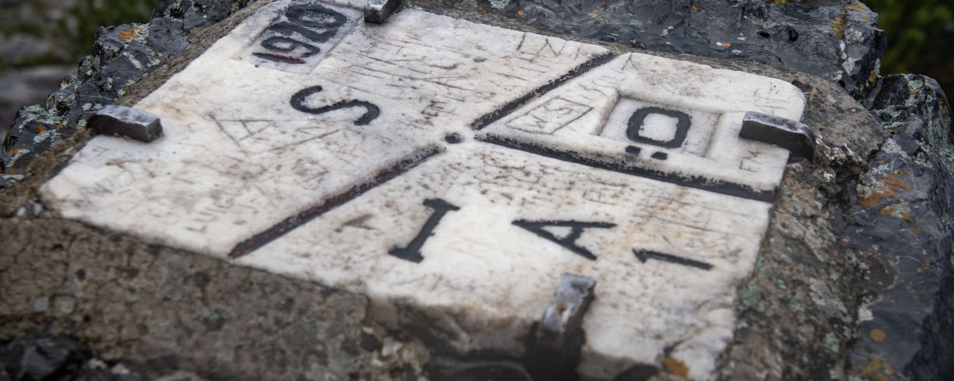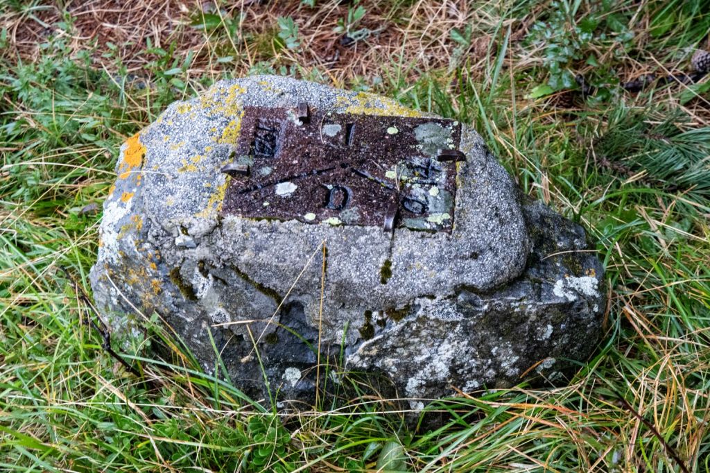 The tripoint is marked by a border marker placed flat on top of a rock. The country names are also inscribed on the side of the rock.