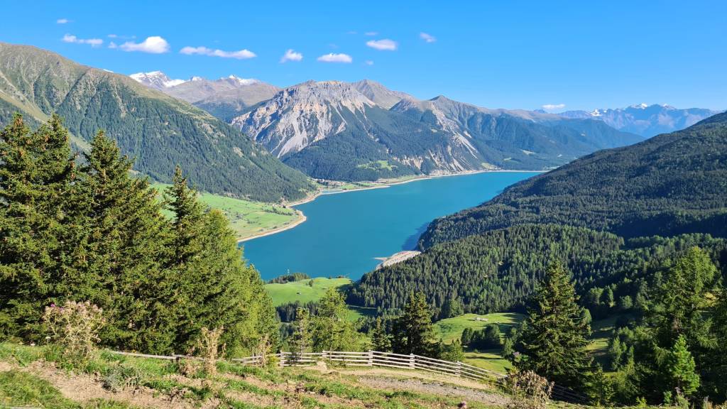 Unfortunately, on the day of our visit, the weather was appalling with heavy rain and a low cloud base. The looked forward views of the Reschensee and it’s famous clock tower which we visited