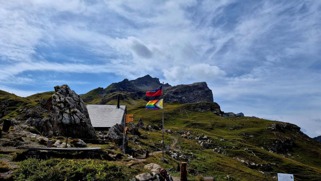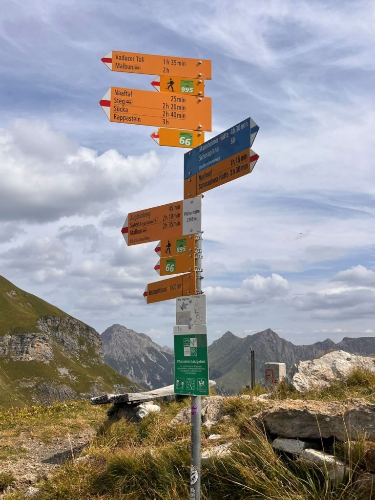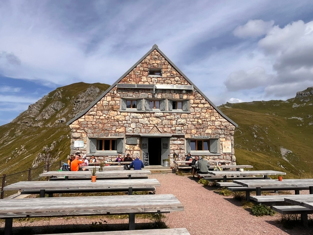 The Pfälzerhütte is a high-alpine mountain hut of the Liechtenstein Alpine Club (LAV), situated at 2,108 metres above sea level on the Bettlerjoch in Liechtenstein. It sits directly on the border with Austria and serves as a key base for hikers on the Liechtenstein Trail and the Via Alpina. For us it was a welcome sight, and was the place where some of us choose not to continue onto the tripoint.