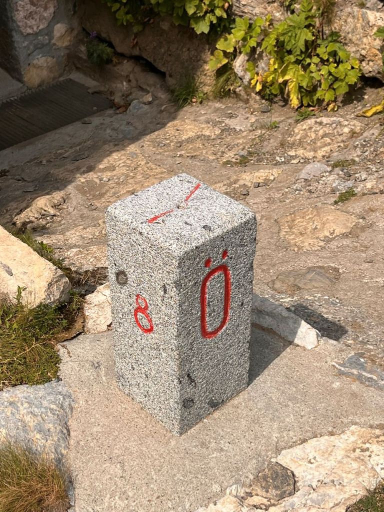 The ascent involves an elevation gain of just over 400 meters. However, the trail is very well maintained and easy to manage though it involves some rocky sections and zig zag paths across scree near the summit. The trail is considered a moderate (T2) mountain hike. Assume 2 hours 20 minutes to ascend and 2 hours to descend. As border enthusiasts we spent an hour on the top and took time exploring the border markers en route.