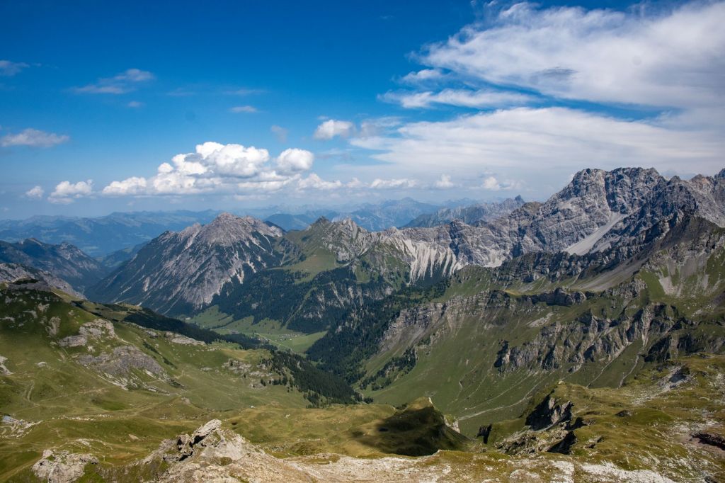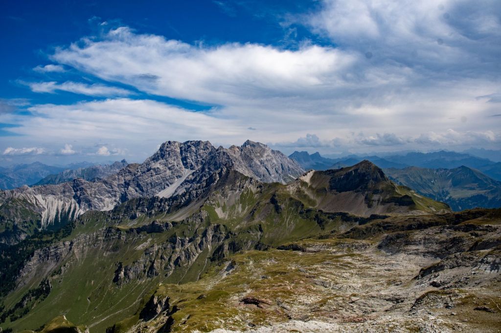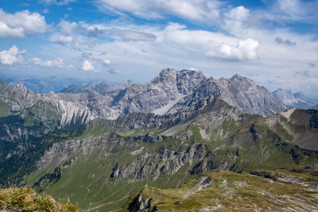 Naafkopf’s prominence lies in its geographical and natural features. The peak is surrounded by steep cliffs, open alpine meadows, and three distinct ridges delineating international borders. The northeastern ridge marks Austria and Liechtenstein, the southeastern separates Austria and Switzerland, and the northwestern ridge defines Liechtenstein and Switzerland. Trekkers can spot the summit’s wooden cross supported by a brick base, symbolising the meeting point of the three nations. Nearby, the Pfälzerhütte (2108m) serves as a historic base for mountaineers and trekkers alike.