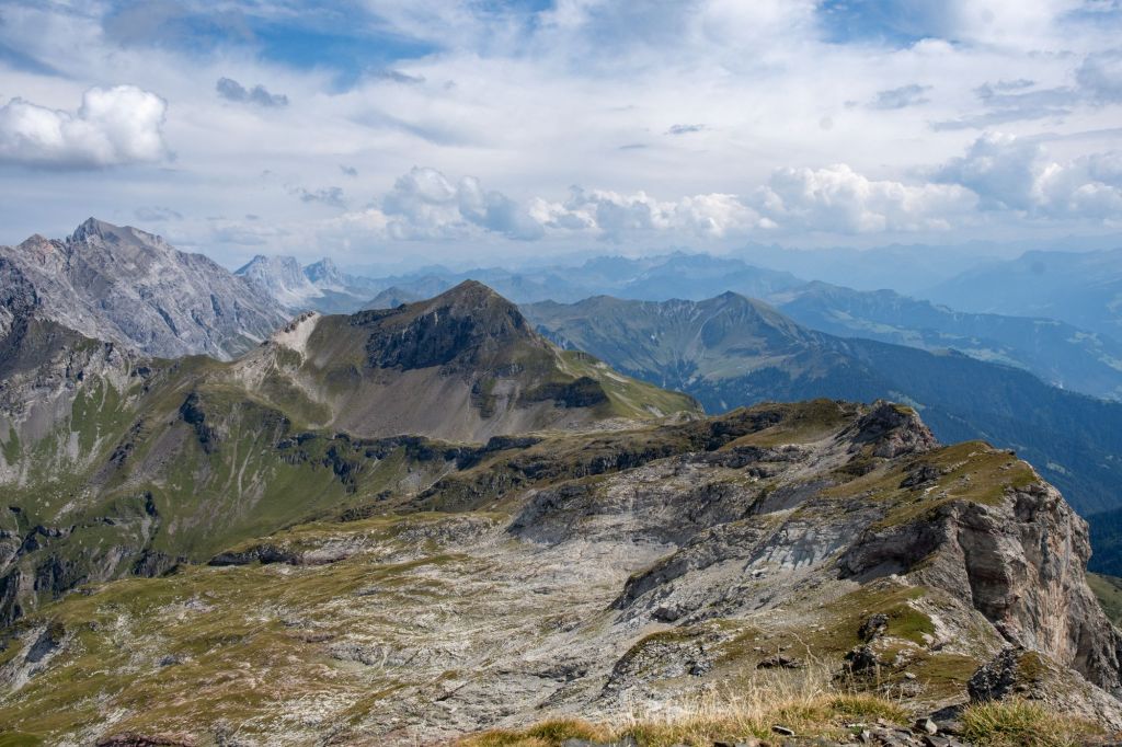 Once on the ridge, it is a beautiful hike in wonderful alpine scenery initially to Spitz (2187m), then Augustenberg (2359m) and on the the Pfälzerhütte (2108m).