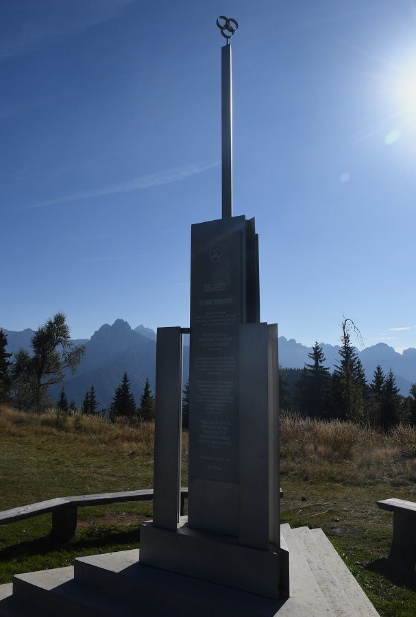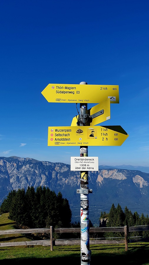 The top of Peč Mountain (1509 m) is where the tripoint between between Austria, Italy and Slovenia is located. Known in Slovenian as Tromeja, in German as Dreiländereck, and in Italian as Monte Forno. The three border area is seen as a symbol of peace and friendship among nations that, in the past, were politically divided. It is the junction of four languages – Slovenian, German, Italian and Friulian (an Italian dialect), and home to joint projects such as The Three Country Olympic Games where Slovenia, Austria and Italy competed together.