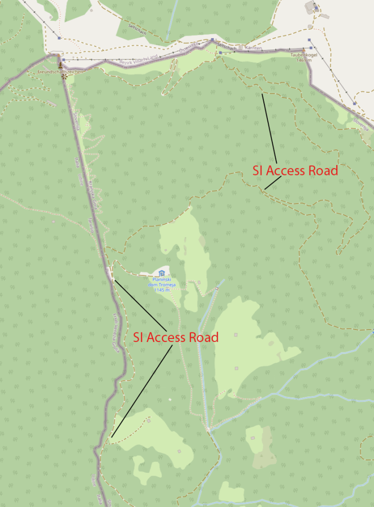 It is possible to hike from each country, in 2011 we chose the Austrian chair life from Seltschach and then a 20 minute hike to the summit. On this visit we were “out of season” and the chair lift was closed, we therefore drove from the Slovenian side using a well graded road that took us within 150m from the tripoint. The report of my 2011 visit is here. I visited this point in 2023 as part of the IBRG SITEX-23 expedition.