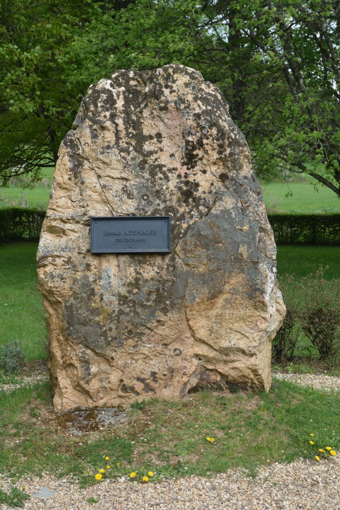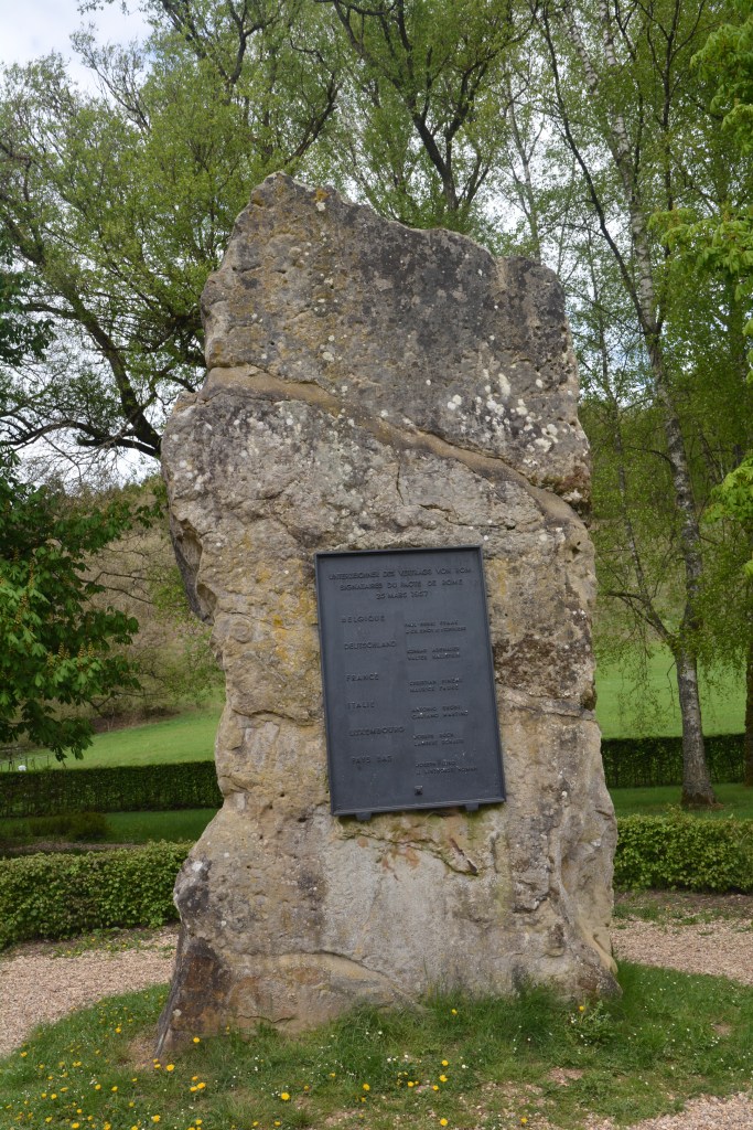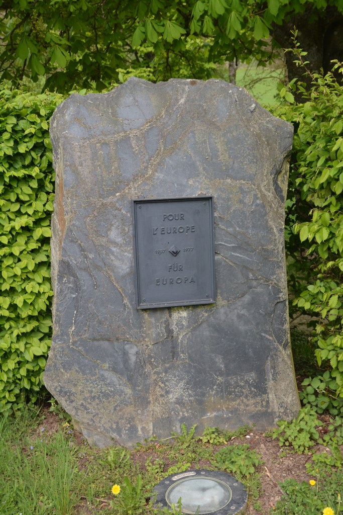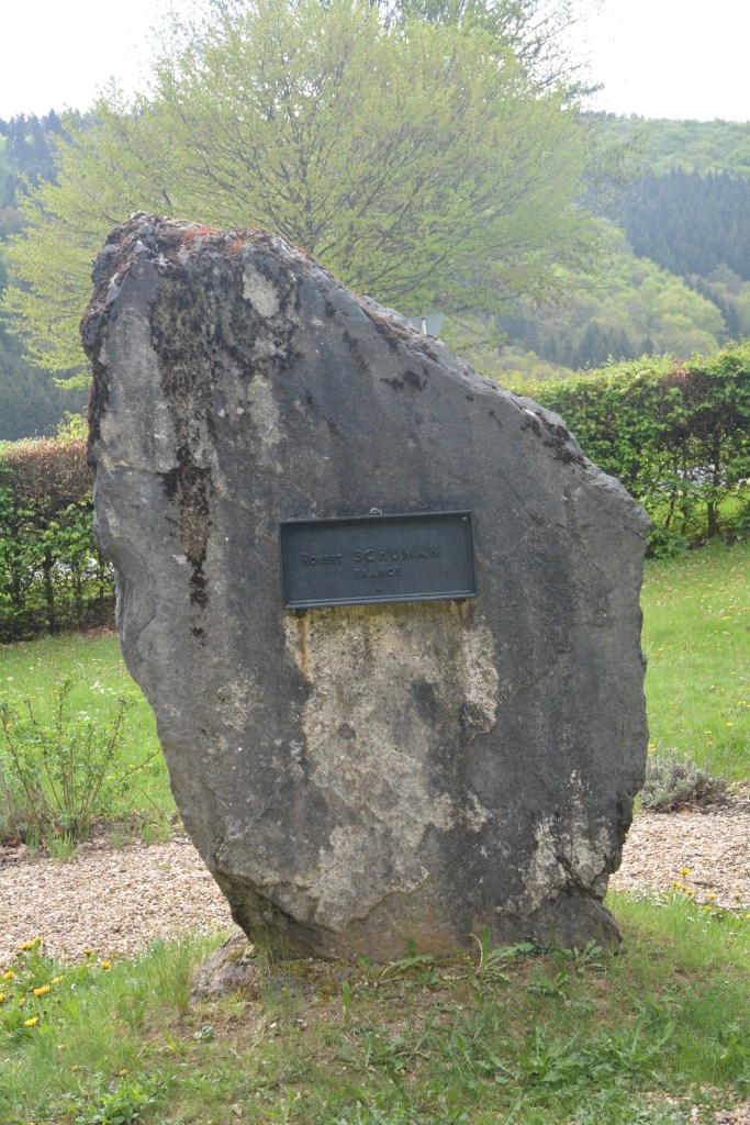 Straddling the border between the Belgium and Luxembourg there is a pleasant park. This Europa Monument was established in 1977 by Georg Wagner (the bridge is named after him). Twenty years after the Treaty of Rome was signed, Luxembourg politician Georg Wagner wanted to commemorate the birth of a united Europe. The President of the Luxembourg Parliament was a strong believer in the European ideal. Five boulders from the three participating countries bear the names of deserving Europeans including Konrad Adenauer. The memorial stones come from the respective countries of origin of the named founding fathers. Gneiss boulder from the Lüneburg Heath for Adenauer, a sandstone block from the Müllerthal-Waldbillig for Bech, blue slate stone from the Hohen Venn for Spaak and a slate block from the Vosges for Schuman. The fifth stone represents the Treaties of Rome and the signatories from the six participating countries.