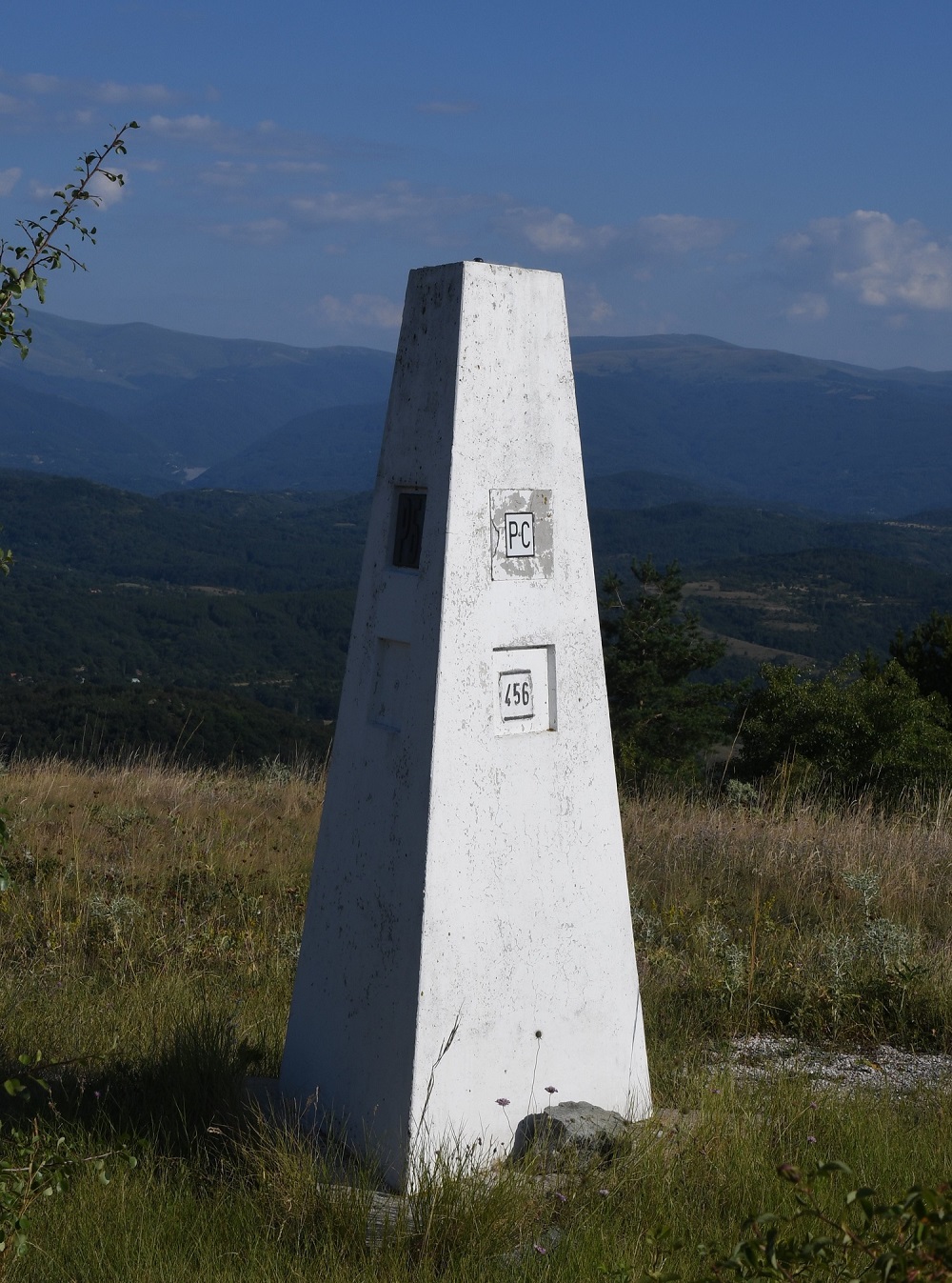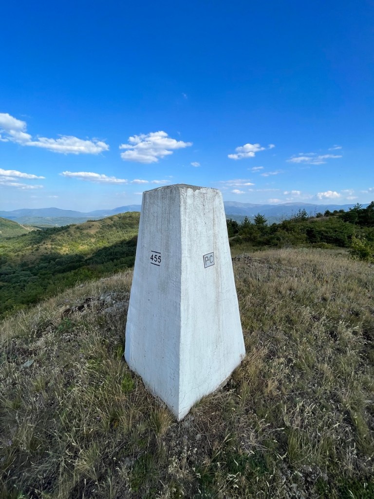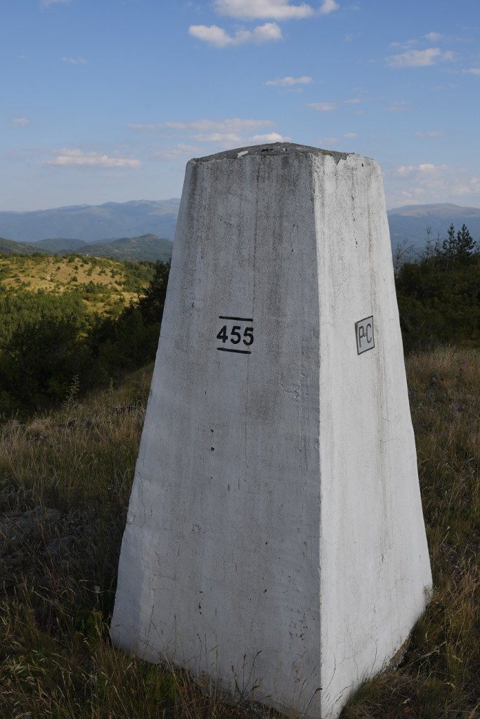 The road became increasingly bad before the village, and impossible to drive without a high clearance 4×4 after it. After leaving the car earlier than planned we walked to the church and onwards to the summit on well defined if overgrown paths. There was not much evidence many people visited this spot. At the summit there were great views of the 3 countries and a number of border markers. The border between Bulgaria and Serbia was well demarcated, with main and intermediate border markers. The border between Bulgaria and North Macedonia was less well demarcated with main border markers some distance apart.