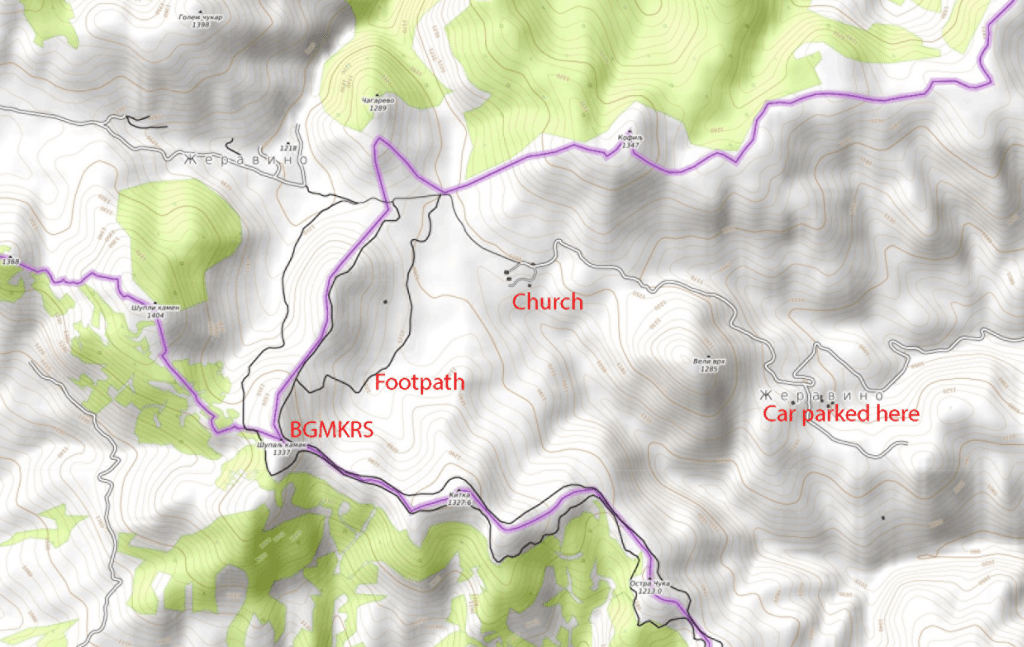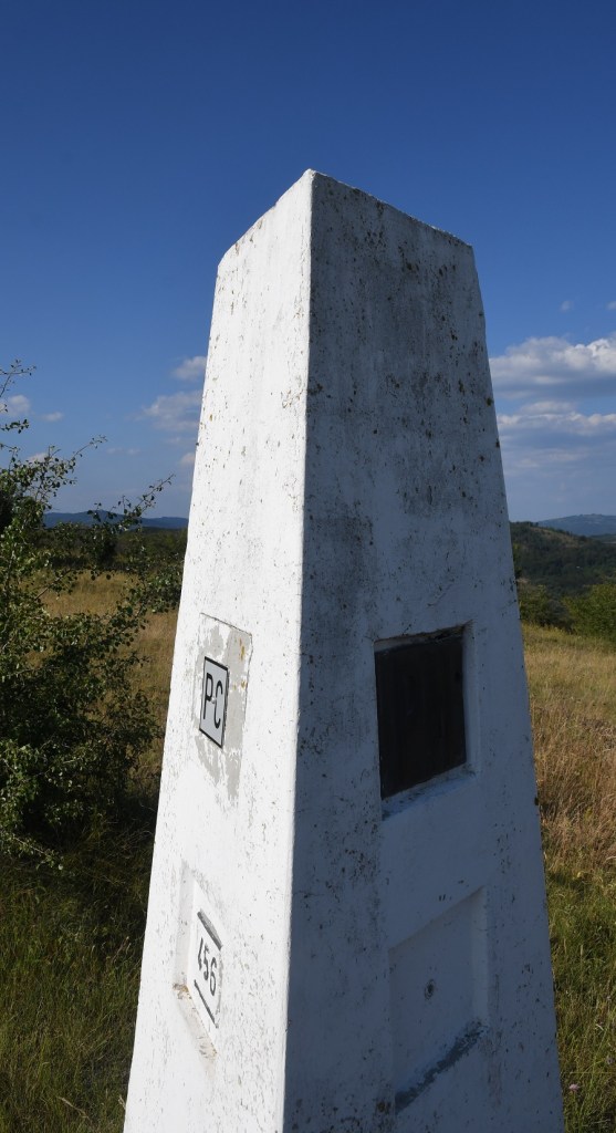 This was the first of 3 tripoints that I visited in July 2022. None of the Bulgarian tripoints had either been visited at all, or not for many years by the border enthusiasts I knew and there was very little online information about whether it was indeed possible or which was the best way to get there. The Bulgaria – North Macedonia – Serbia tripoint on the face of it was the most straightforward with a drive to Žeravino, a remote Bulgarian hamlet and onto St George’s Church before walking up to the summit of Shulep Kamak Peak (1337m). The peak was once described as the westernmost point of Bulgaria, however more advanced mapping techniques now puts that point at the col of Vrashka chuka (43.805688°N 22.354275°E).