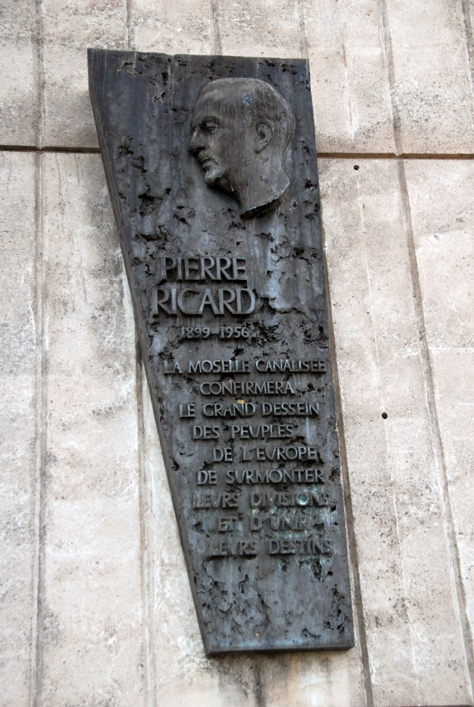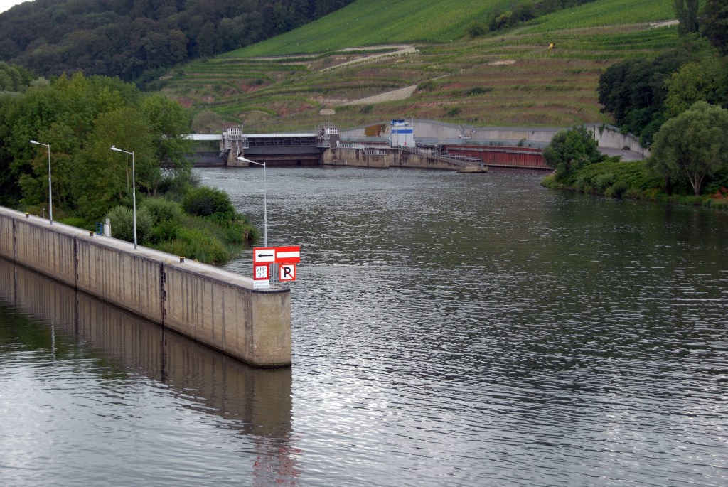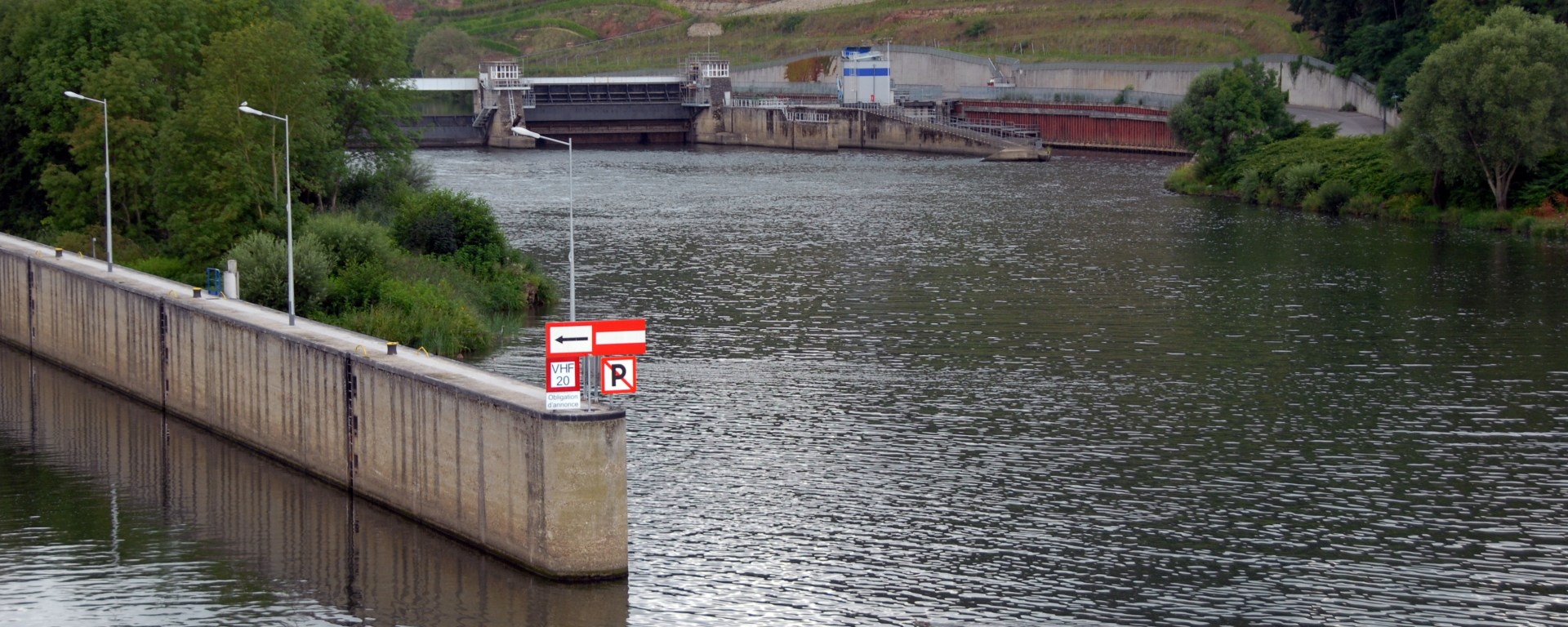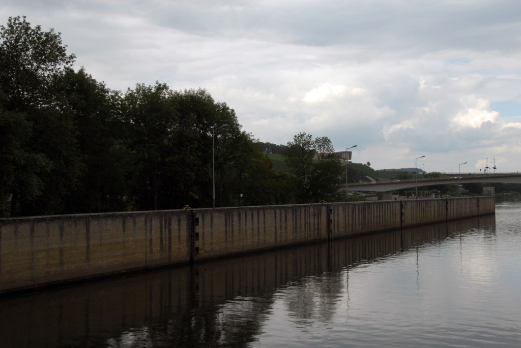 DELUFRLU is the western technical tripoint and is where the condominium meets the border between Luxembourg and France in middle of the Moselle. DEDELUFR is the eastern technical tripoint where the borders of France and Germany meet on the side of the lock. In between these 2 points is the triline (not one single point) DEFRLU. This triline is approximately 114 m long and cuts across the island in the Moselle.