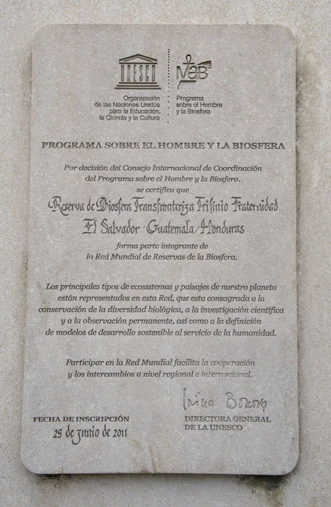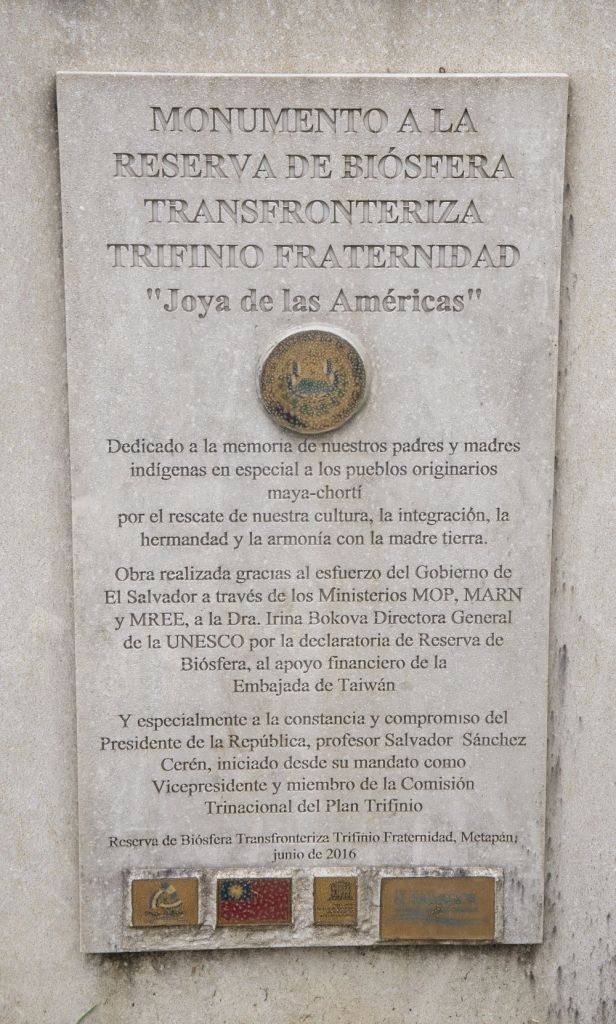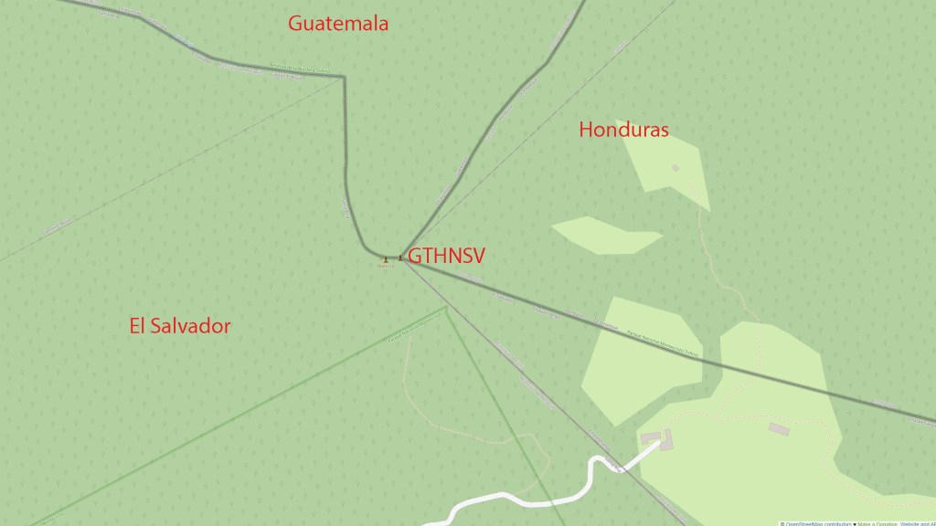 The tripoint between Guatemala, Honduras and El Salvador was Established initially in 1821, and subsequently by a GTHN arbitral tribunal 1933 & trilateral protocol 1936. These dates are inscribed on the monument itself. The tripoint is located at the summit of Cerro Montecristo (2418 m) in the Montecristo Massif. This point is known as Trifinio. I visited this tripoint as part of the IBRG CATEX-24 expedition.