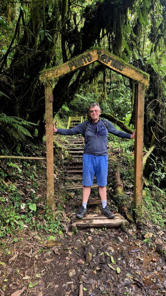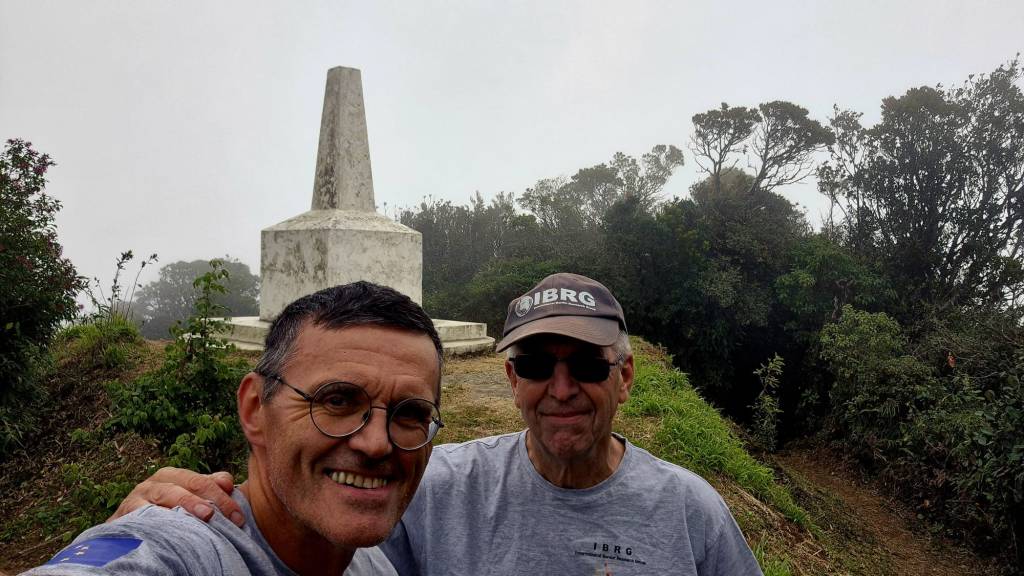 The last steep pull up to the top and our first glimpse of the tripoint monument. We visited this point as part of the IBRG CATEX-24 expedition. Our primary aim was to visit the 3 Central American tripoints and this was our #2 bagged.