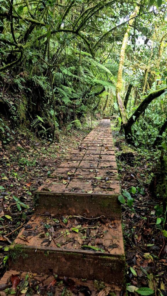 Shortly after leaving the gate we found a junction, the path on the right acts as a short cut and I would recommend using it if the weather is dry. We took the road up and the path down. As altitude was gained, the rain forest ecosystem became more dominant, and reminded me of New Zealand. Unlike BZGTMX, the temperature was pleasant and even cool towards the top.